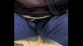 Orinando mis pantalones cortos sentado afuera